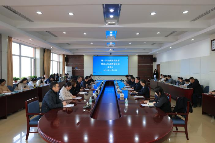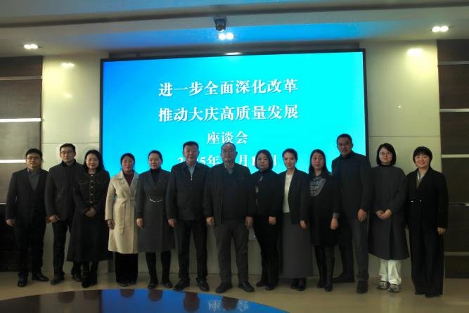 为深入贯彻党的二十届四中全会精神,聚焦大庆市高质量发展核心议题,11月12日下午,由大庆市社会科学界联合会主办,我校科研处、球友会体育等单位联合承办的“进一步全面深化改革 推动大庆高质量发展”座谈会在主楼733会议室顺利召开。会议采用“线下+线上”结合模式,球友会体育教师代表现场参会,大庆市社会科学界联合会所属兄弟学会会员通过线上会议参会,会议由球友会体育院长刘楠主持。